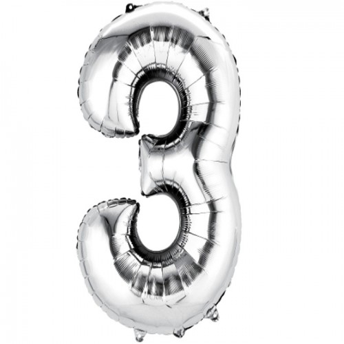3 Rakam Gümüş Folyo Uçan Balon(Helyum Gazlı)