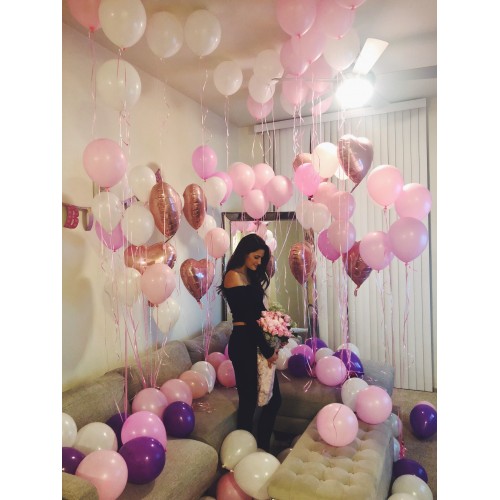 • 50 adet pembe, beyaz, fuşya tonlarında uçan balon