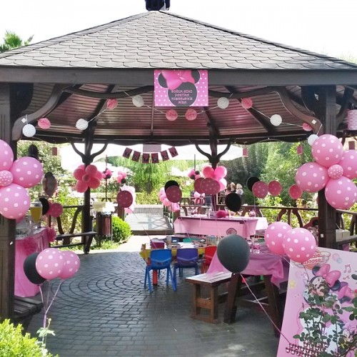 • 25 adet pembe beyaz puantiyeli ve siyah uçan balon
